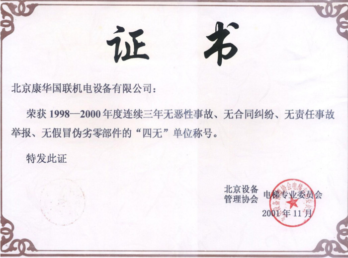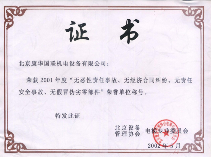 2001年度榮譽(yù)單位稱號