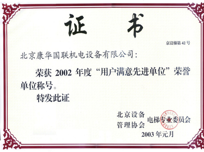 2002年度用戶滿意先進(jìn)單位